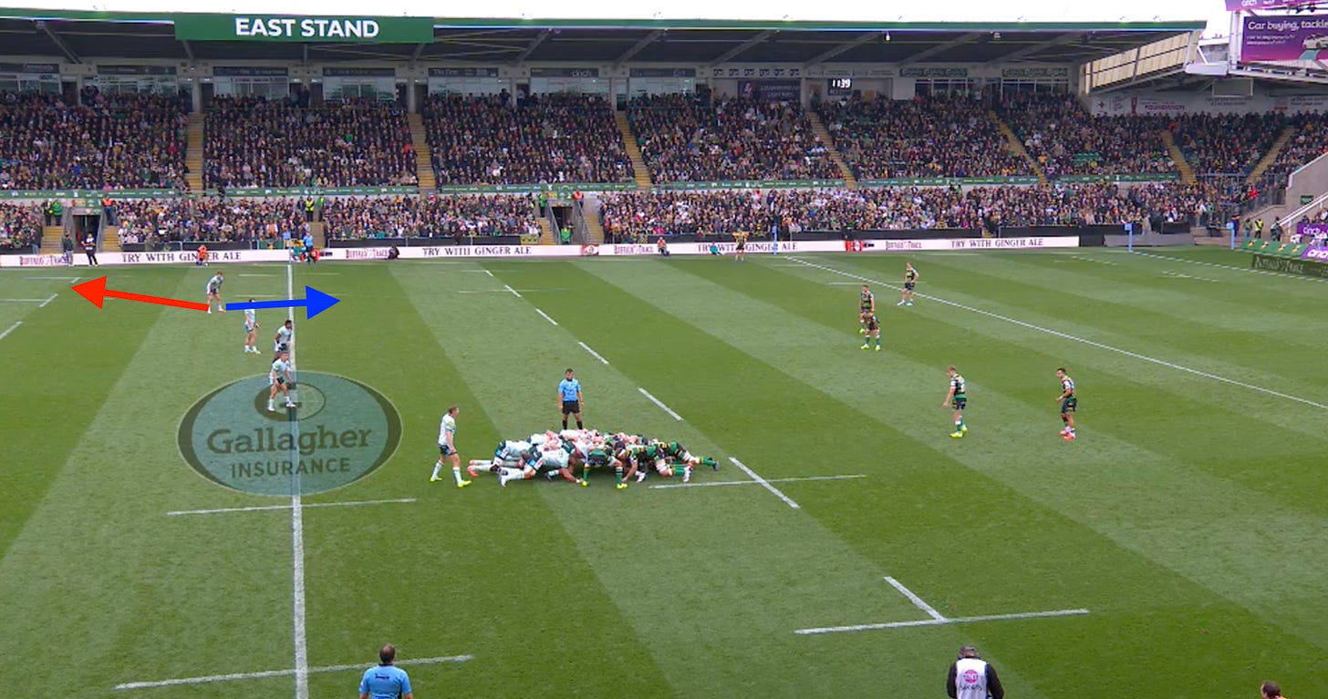 Let’s break down this try scored by Northampton Saints against Leicester Tigers - there are a lot of elements that are commonplace when it comes to defending a scrum in this area of the pitch.